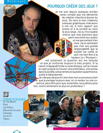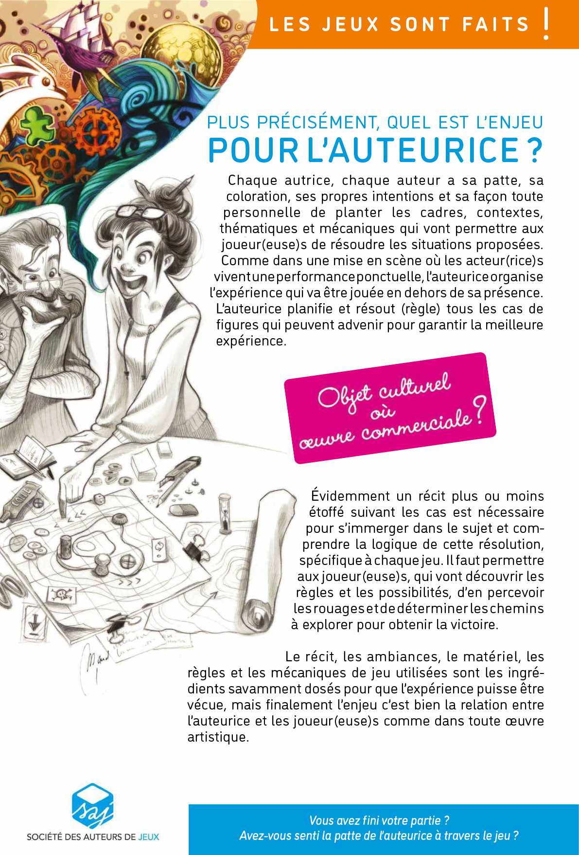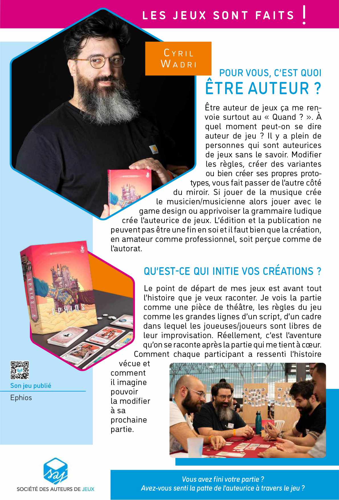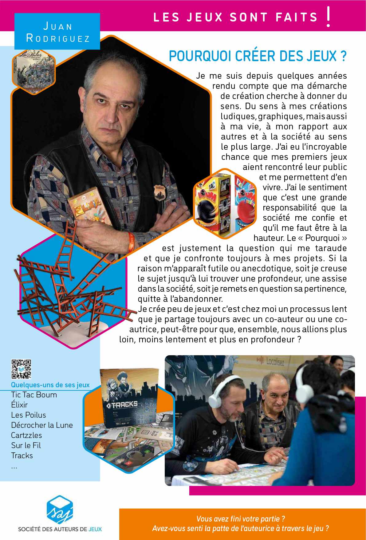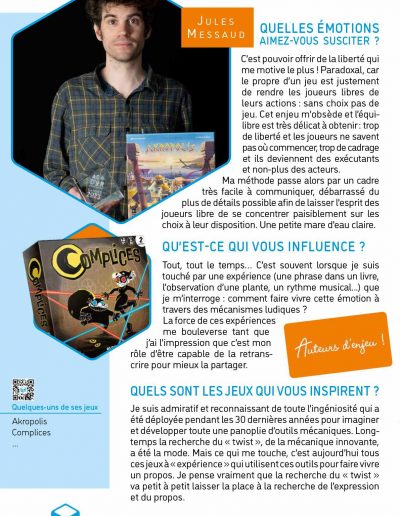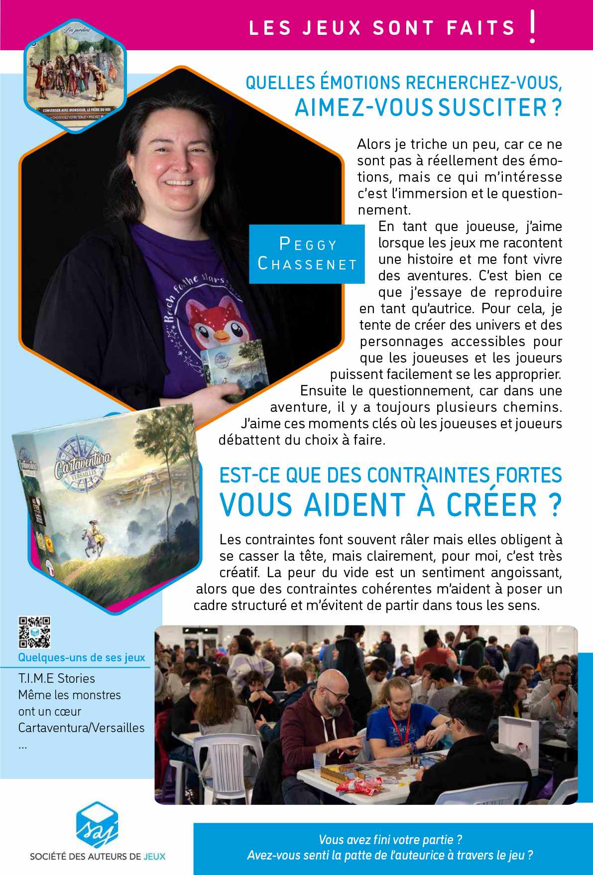 Cette exposition est l’occasion de rappeler que derrière chaque jeu se cache un auteurice, avec une sensibilité, une démarche, une histoire. Et qu’au sein de notre communauté de joueuses et joueurs, il existe une richesse et une diversité méconnue. Cette présentation d’individualités, très loin d’être exhaustive, permet un début de personnalisation, ainsi qu’un éclairage sur ce métier si particulier. L’exposition cherche à démontrer les approches particulières de chacun et chacune et leur rapport intime à la création !
