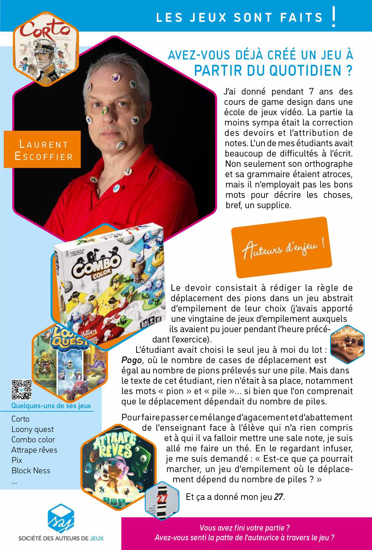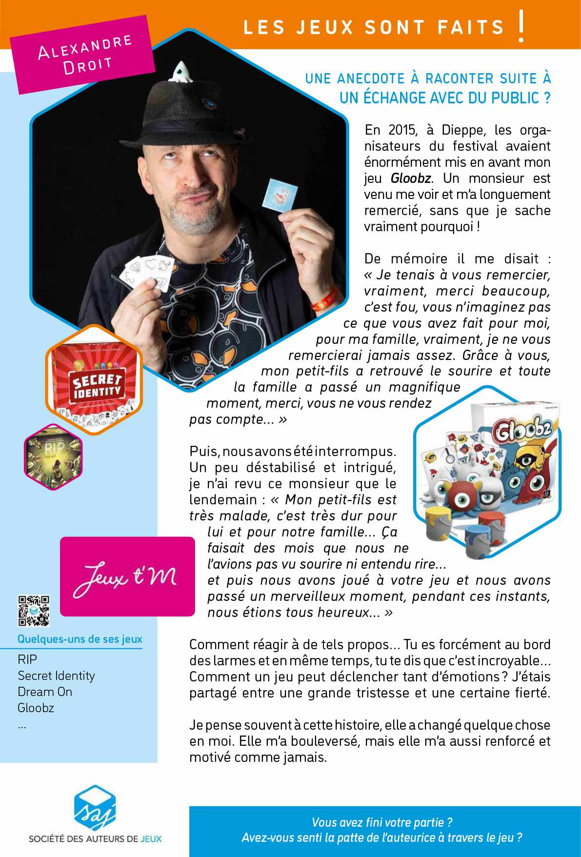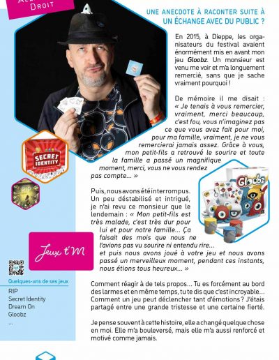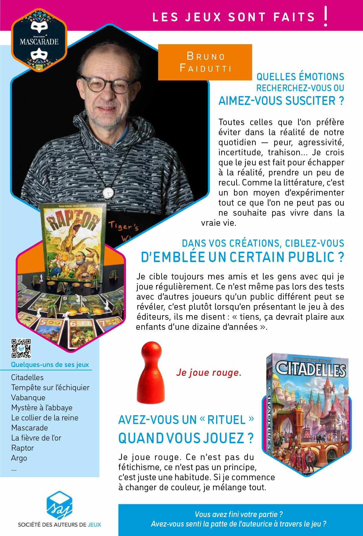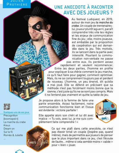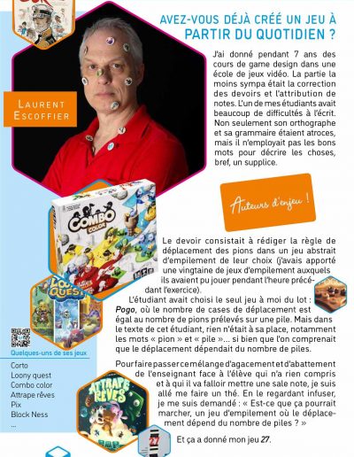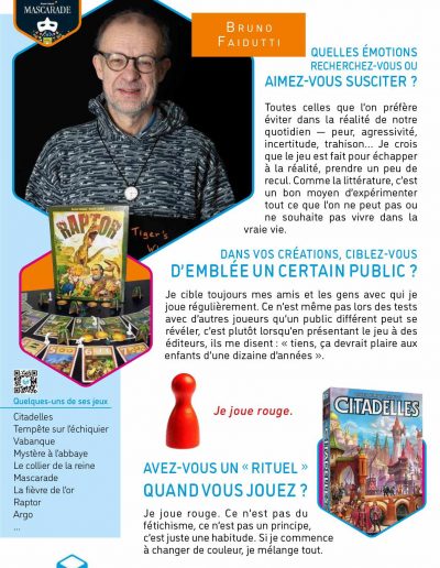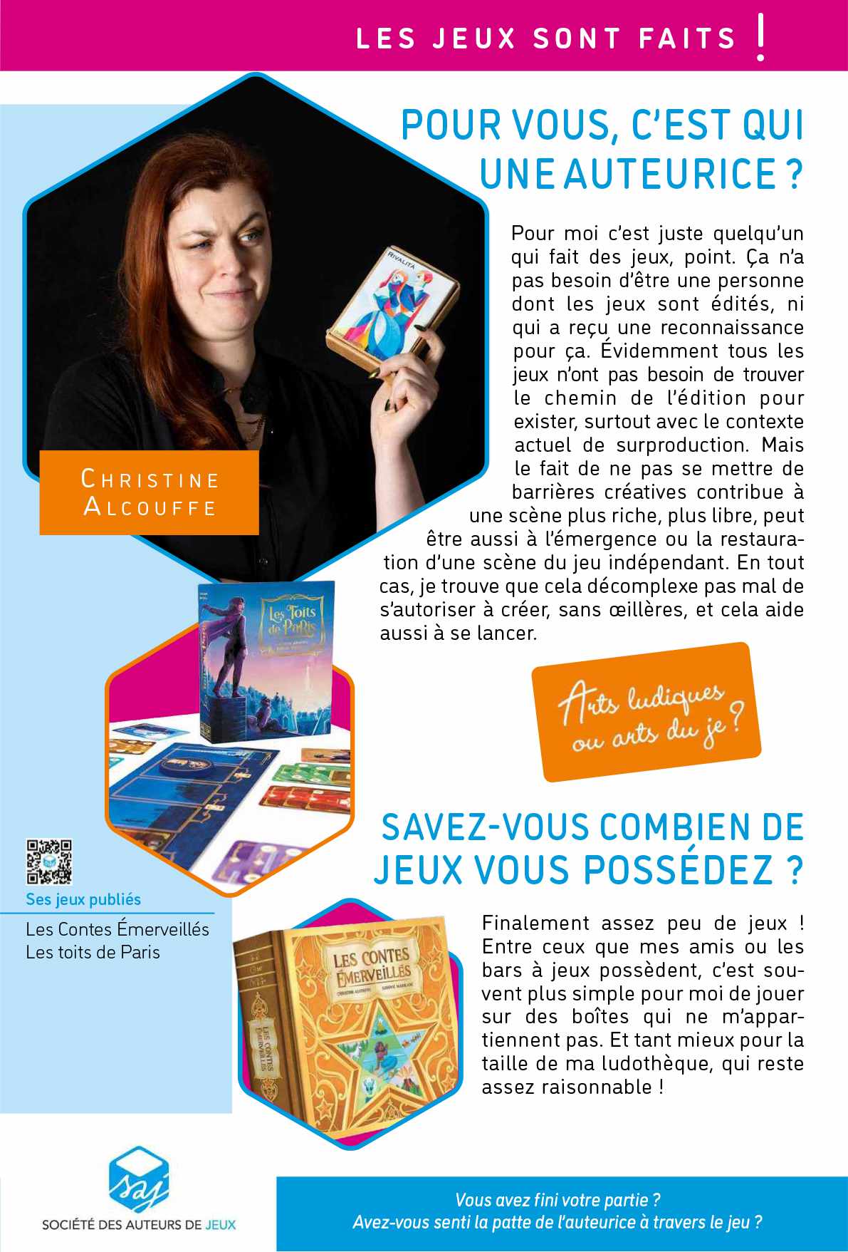 Cette exposition est l’occasion de rappeler que derrière chaque jeu se cache un auteurice, avec une sensibilité, une démarche, une histoire. Et qu’au sein de notre communauté de joueuses et joueurs, il existe une richesse et une diversité méconnue. Cette présentation d’individualités, très loin d’être exhaustive, permet un début de personnalisation, ainsi qu’un éclairage sur ce métier si particulier. L’exposition cherche à démontrer les approches particulières de chacun et chacune et leur rapport intime à la création !